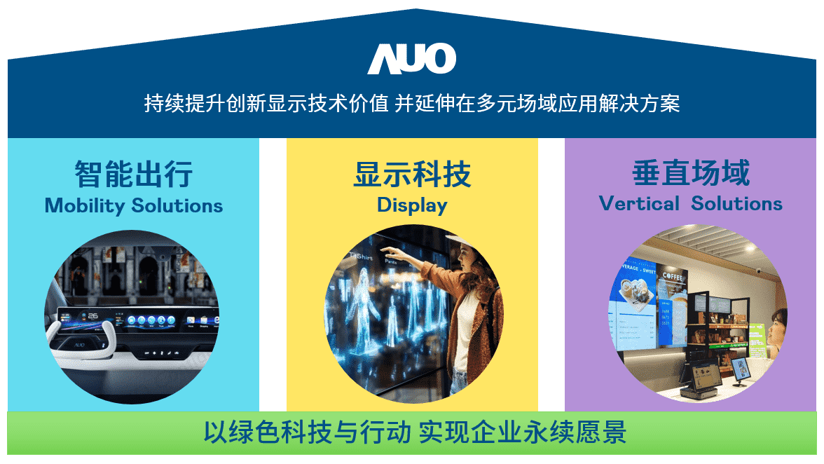 我们持续推动「双轴转型」,,,,在精进显示技术附加价值(Go Premium),,,,与深化垂直市场应用(Go Vertical)的策略下,,,,对应z6尊龙的优势竞争力与趋势,,,,我们奠定显示科技、、智慧移动、、垂直场域三大永续营运支柱,,,,在显示技术领域的根基之上,,,,延伸布局多元场域应用解决方案。。。将先进显示科技助力智慧移动及垂直场域发展,,并以绿色科技与行动为实践,,在转型之路上贯彻永续经营之愿景。。。