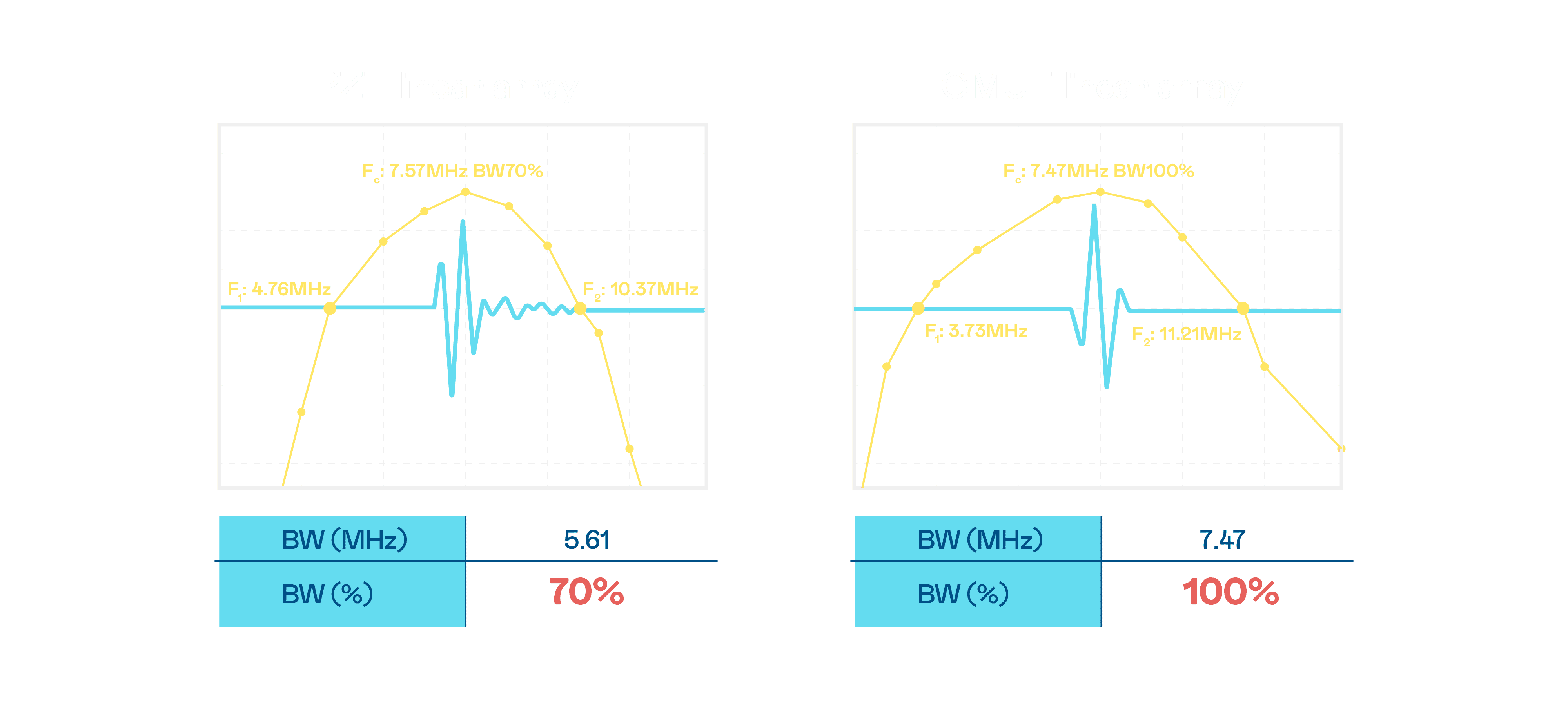 超音波影像的解析度高低,,首先取决于探头能发出的讯号频宽。。。z6尊龙 CMUT 可提供高清晰的超音波讯号,,提供高频宽、、、高灵敏度、、、、影像纹理细节更高的超音波影像,,,协助医护人员缩短影像判读时间及利用精准的医疗影像进行诊断。。。。